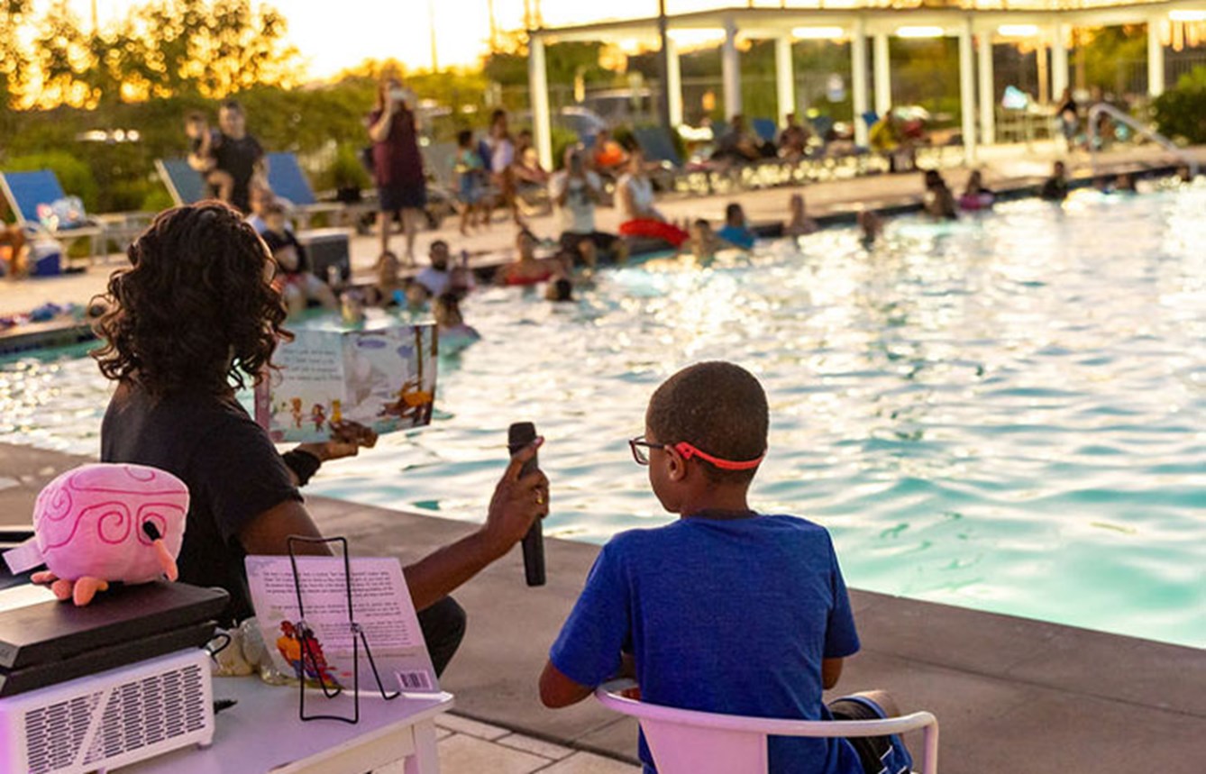 Under the summer sky, residents floated in the cool water while Genein and Shawn brought their stories to life in a read-aloud. It was more than a book reading—it was a celebration of imagination and the joy of family creativity.